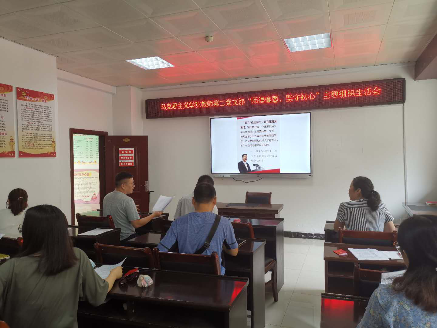 为了庆祝中国共产党成立99周年,按照学校《中共Beat365中文官方网站委员会关于在 “七一” 期间组织开展以“牢记初心使命 、争当出彩先锋”为主题的支部党日活动的通知》要求,2020年7月1日下午,Beat365中文官方网站教师第二党支部全体教师在10105会议室召开“师德惟馨,坚守初心”专题组织生活会。
