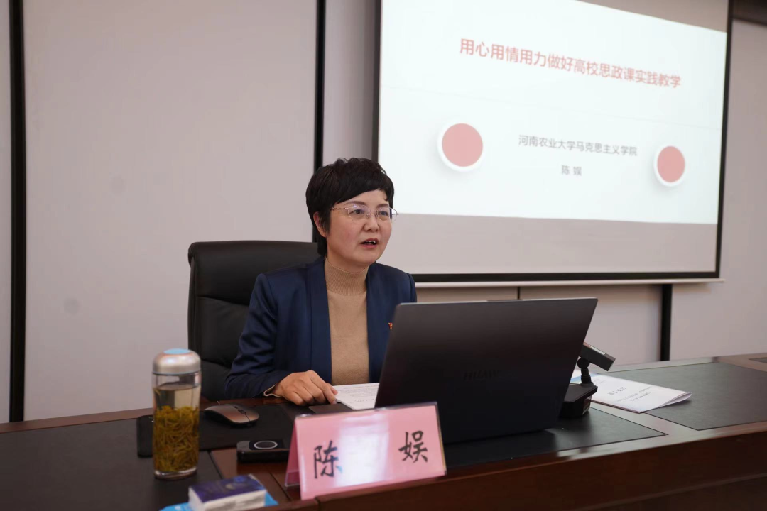 全国高校思政课名师工作室(河南农业大学)负责人陈娱教授以《用心用情用力做好高校思政课实践教学》为题,介绍了高校思政课实践教学的缘起,阐释了高校思政课实践教学的内涵与价值,结合长期教学经验深入分析了高校思政课实践教学的现实与困惑,分享了基于课程性质、行业特点、地方资源、馆课结合的高校思政课实践教学模式。在遵循全员参与、过程可控、教师主导、学生主体、形式多样、综合考评的基本原则基础上,就如何打造思政课实践教学品牌提出了形成统一行动、凝聚广泛共识,建立健全实践教学品牌化的保障体系,建立完善的实践教学品牌化考评体系,通过创新形式进一步拓展实践教学品牌化内容,继续扩大覆盖课程和受众学生五方面的对策,并对我院各门思政课初步形成的实践教学模式和成果进行了诊断和点评,提出了建设性建议。报告内容全面详实,思想深刻且引人入胜,是一场有滋有味有灵魂的思政“金课”。