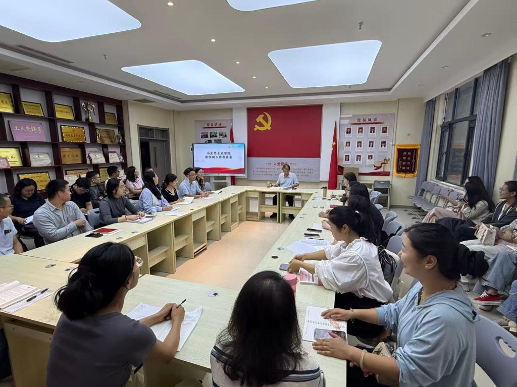 就如何做好新学期的重点工作,会议强调:一要全面落实新学期开学教学准备工作。科学谋划、精心准备,确保教师、教材、教学资源到位,做到教案、课件、教学大纲等资料完备规范,以标准化管理夯实教学质量基础,保障教学工作有序开展。二要精心组织“开学思政第一课”。结合中国人民抗日战争暨世界反法西斯战争胜利80周年,将爱国主义教育和抗战精神有机融入课堂教学,精心设计“第一次课”,为不断提升思政课的吸引力和实效性开好局。三要加强集体备课。结合各门思政课开展集体备课“月月备”活动,优化教学设计,融入案例教学,定期组织教师集中学习、讲示范课、互相听课,提升教学质量和实效。四要深化“大思政课”品牌建设。组织开展第二届“大思政课”建设暨思政课实践教学成果展示活动,优化思政课实践教学方案,完善思政课实践教学体系,根据课程特点做出亮点和成绩,打造思政实践育人品牌。五要全力推进河南省2025年度优秀思政课程资源征集工作。积极展示学院思政课教学的特色与成果,争取在已有成绩上实现新得突破。鼓励青年教师积极参加第二届青年教师基本功大赛,以赛促练、以赛提质,助力青年教师尽快成长为优秀的思政课教师。六要全力以赴推马院标准化建设工作。严格对照河南省示范性马院建设标准,全面排查工作薄弱环节,规范档案资料整理归档,夯实马院发展基础,做好迎接全省标准化马院验收准备工作。