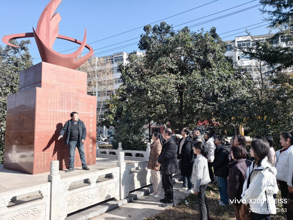 为深入学习贯彻党的二十届四中全会精神,不断丰富思政课实践教学资源,用好红色资源,推动思政教育与红色实践深度融合和学校“大思政课”建设,Beat365中文官方网站党总支于 11 月 29 日组织全体党员教师赴河南灵宝开展红色资源探寻活动。
