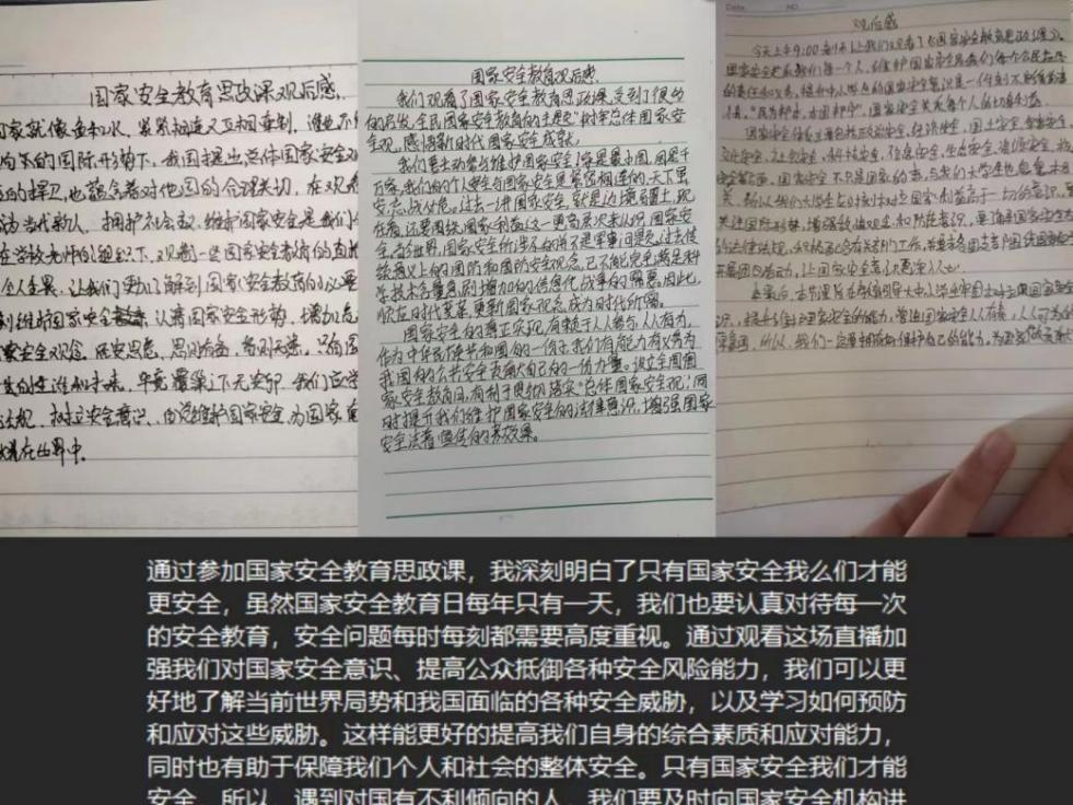 通过此次收听收看国家安全教育主题思政课,使Beat365官网学生进一步系统感悟了新时代的国家安全成就,学习了国家安全教育知识,增强了国家安全意识。同学们纷纷表示,要坚定不移地维护国家安全,筑牢安全底线,做国家安全的忠实守护者,为维护国家安全贡献青春智慧和力量。