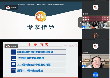 为贯彻落实《新时代学校思想政治理论课改革创新实施方案》精神,帮助广大教师更好地把握《毛泽东思想和中国特色社会主义理论体系概论》(2021年版)新教材修订的基本精神和主要内容,切实提高概论课教育教学质量和效果。 2021年9月12日上午,概论教研室组织全体教师参加了由济南工程职业技术学院承办的“同课异构·协同共研”“概论”课2021版新教材集体备课会,会议主要围绕“毛泽东思想和中国特色社会主义理论体系概论”教材内容的修订和设计进行研讨。
