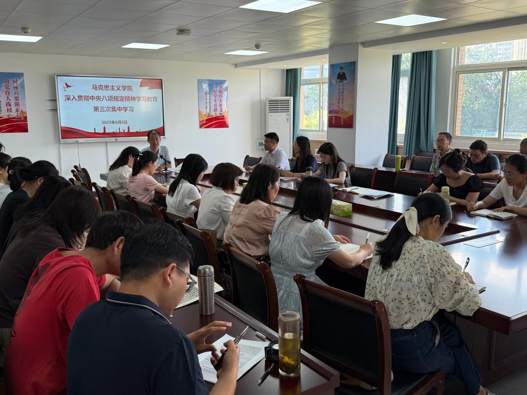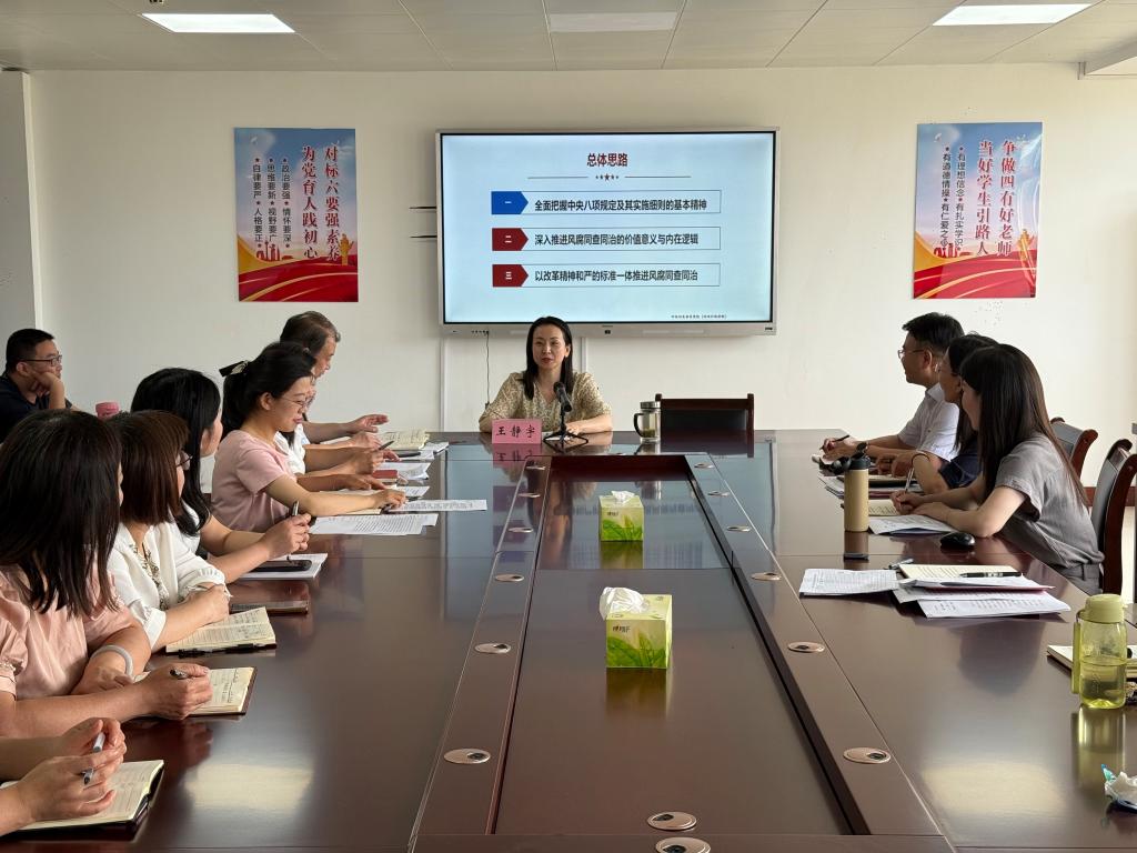 为推动深入贯彻中央八项规定精神学习教育见行见效,增强党员纪律意识,持续改进工作作风,根据学校党委安排部署,6月5日上午,Beat365中文官方网站党总支召开全体党员大会,开展深入贯彻中央八项规定精神学习教育第三次集中学习,党委委员、宣传和统战部部长王静宇出席会议并讲授专题党课。会议由党总支书记孟昭阳主持。