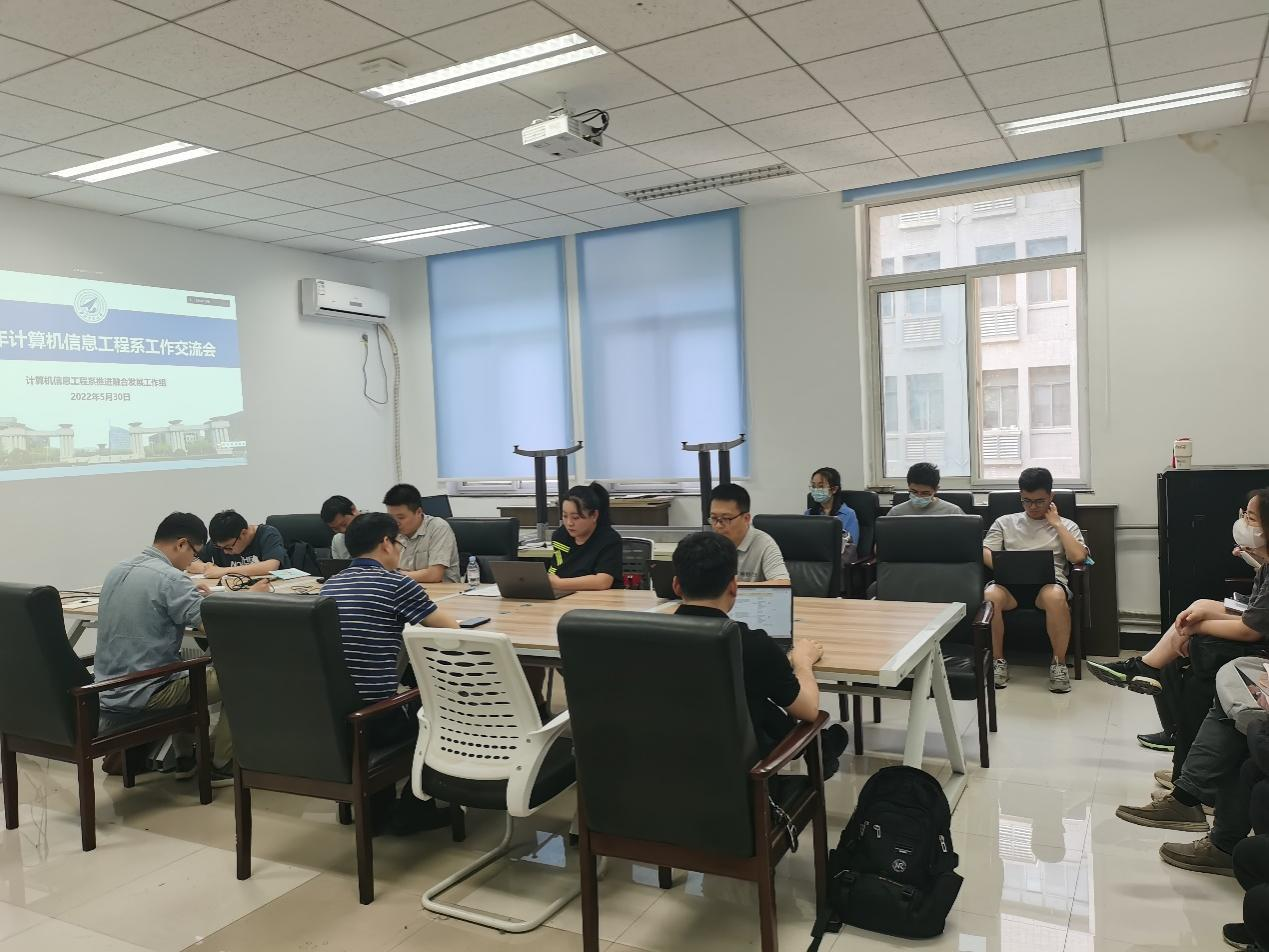 本次会议是计算机信息工程系成立推进融合发展联合工作组以来,由联合工作组组织召开的首次工作交流会。张磊向全体参会人员汇报了推进融合发展联合工作组成立的初衷、目前的建设情况以及未来的发展规划。张枢组织与会人员深入学习了永利集团88304官网集团2035发展战略和“十四五”规划,并汇报了计算机信息工程系目前人才引进工作的进展和存在的问题。接着,张磊汇报了计算机信息工程拟打造的“顶天立地写论文”和“薪火相传”人物专访等品牌活动,并与参会人员研讨了研究生课程调整的情况。随后,白璐带领与会人员学习了高校廉政学习材料并汇报了教工党支部申报样板支部的相关情况。张世周重点向与会教师介绍了本科招生的基本流程和相关规定,总结了去年的经验,为新进青年教师参与本科招生提供了思路。夏勇强调本科招生要长周期、早布置,不能临时抱佛脚。