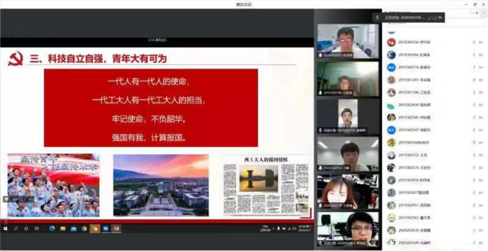 结束时,李春科书记寄语同学们:“一代人有一代人的使命,一代工大人有一代工大人的担当。要牢记使命,不负韶华,强国有我,计算报国!” 党课在同学们的集体宣誓中结束。