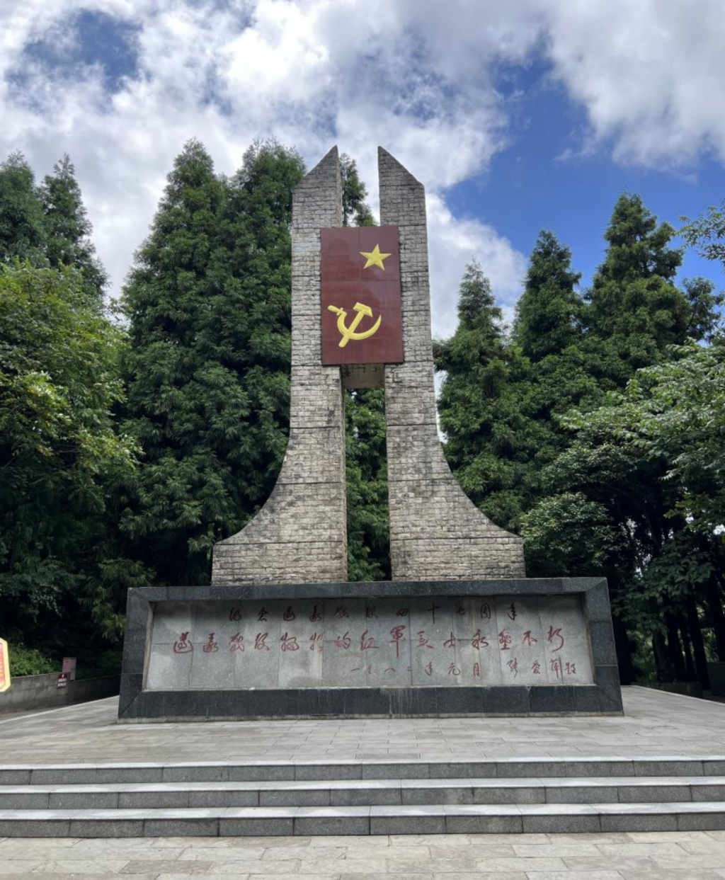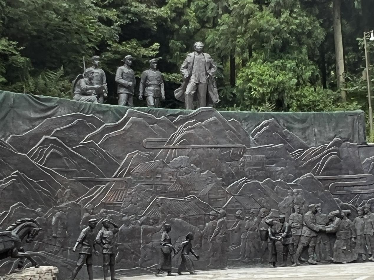 一尊锈迹斑斑的火炮静静矗立在山地之中,斑驳的红锈与伤痕无言地陈述往昔战场的种种,告诫世人和平的来之不易。大娄山曾是战士们的激战场,实践队沿着其间遗存的壕沟缓步行走。在壕沟之中,一尊尊昔日英烈的雕像伫立,或怒吼,或专注,或悲痛……昔日红军英勇作战的种种景象在眼前徐徐展开,实践队怀着庄严肃穆的心情,追忆先贤的英勇身姿。就是这样一个个决绝而又坚毅的身姿,支撑起了长征的伟大胜利,为后世留下了弥足珍贵的精神财富。