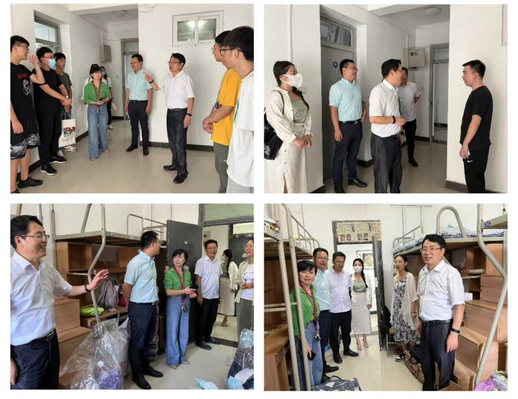 为了体察同学们的衣食住行,2022年9月8日和9日下午,永利集团88304官网集团党委书记李春科、副院长尚学群、副院长邓磊、党委副书记万海东、新生辅导员周颖、李青、牛凯以及新生班主任孙蓬、黄志杰对永利集团88304官网集团2022级新生进行了走访慰问,详细了解同学们的专业、特长,以及入校后的生活体验等方面。