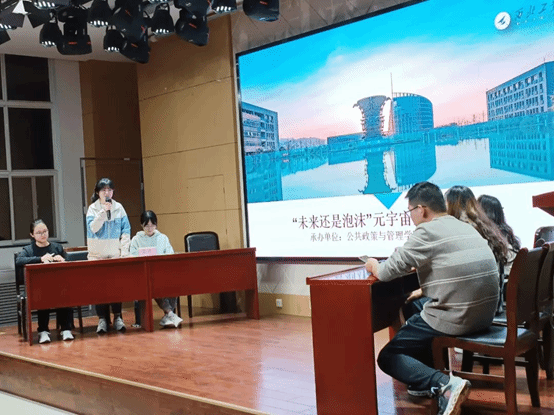 活动期间,参赛选手们积极发表论点,在精彩的辩论中诠释自己对元宇宙的理解,以言语争锋、竞逐,尽显青春风采!