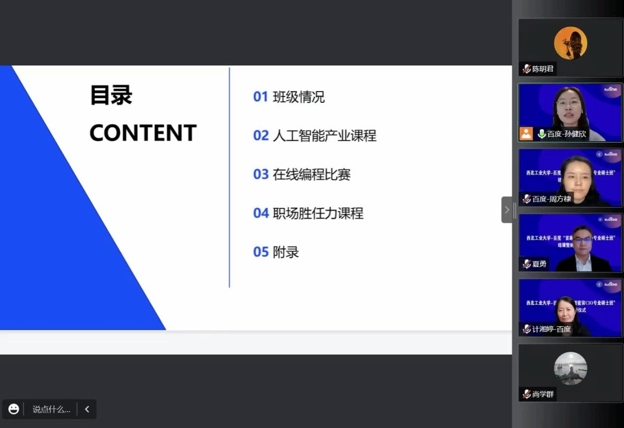 为进一步深化校企合作,促进产学研深度融合,12月8日下午,永利集团88304官网集团应邀与百度共同召开“首席智能官CIO专业硕士班”结课暨纳新仪式,本次仪式采用线上形式召开,永利集团88304官网集团院长尚学群教授、副院长夏勇教授、首席智能官CIO专班班主任张磊教授、百度高校合作部副总监计湘婷、百度高校合作部经理周方棣、百度高校合作部乔文慧,以及2021级和2022级CIO专班学生出席了本次会议。会议由百度高校合作部孙健欣主持。