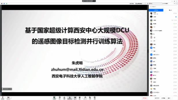 在签约揭牌仪式结束之后,国家超级计算西安中心的李海静老师和永利集团88304官网集团的侯正雄副教授主持了超算前沿技术研讨会。郭伟科老师介绍了国家超级计算西安中心的建设和应用情况,潘书诚教授和牛海洋教授分别作了题为《基于国家超级计算西安中心的流体数值模拟程序开发》、《基于深度学习分子动力学的材料凝固形核过程研究》的报告,朱虎明副教授作了题为《基于国家超级计算西安中心大规模DCU的遥感图像目标检测并行训练算法》的报告。与会者围绕超算和人工智能融合的应用、自主研发和开源软件等展开了热烈讨论。