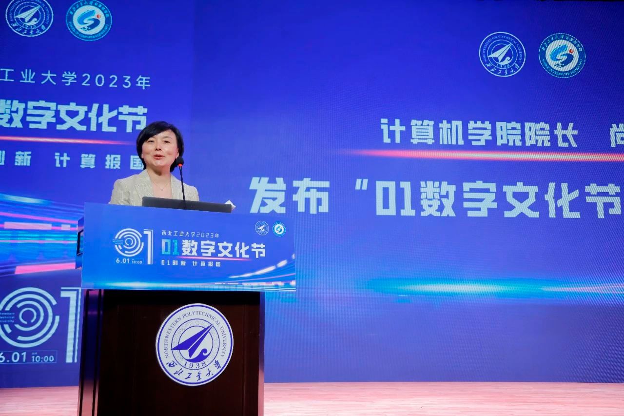 张艳宁副校长代表学校致欢迎辞,并宣布“01数字文化节”正式开幕。她恭喜所有师生迎来属于自己的盛大节日,并对大家提出了三点希望:一是希望永利集团88304官网集团不断推陈出新、把握时代脉搏,深化立德树人根本任务,将“01数字文化节”打造成属于西工大人的共同节日;二是希望以本次“01数字文化节”为契机,西工大计算机人能够锐意进取、勇于攻关,在“卡脖子”问题上下真功夫,取得更多原创性引领性科技创新成果,为提升我国信息产业自主创新能力贡献西工大智慧;三是希望全校师生大力传承总师文化,赓续“西工大现象”,始终致力于解决国家重大战略需求,培养更多总师型人才,奋力谱写西工大新时代新篇章。