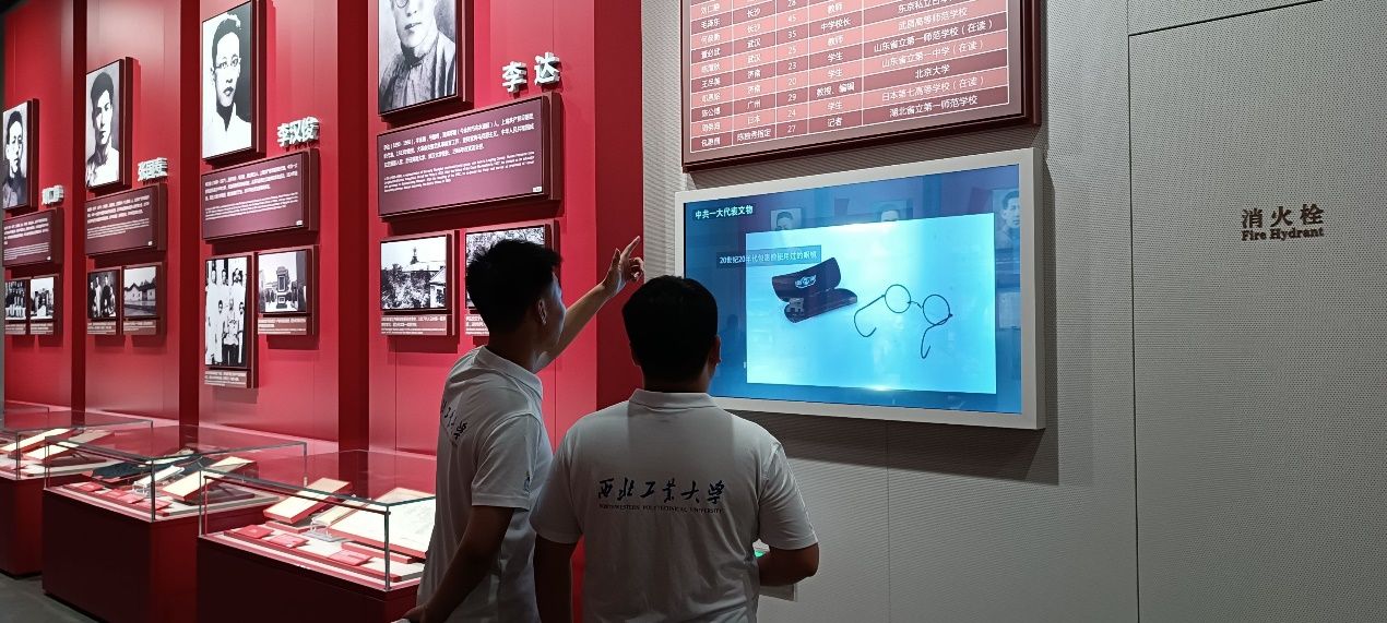 随后,实践队员们步入中共一大会址纪念馆内部,追随《伟大的开端——中国共产党创建历史陈列》脚步,相继参观了“前仆后继,救亡图存”、“民众觉醒,主义抉择”、“早期组织,星火初燃”、“开天辟地,日出东方”等7个展区,深入了解了中国共产党的发展历程、党的初心和使命以及中国共产党在中国革命和建设事业中的伟大贡献,真切感受到了革命先驱们争取民族独立、人民解放和国家富强所做出的艰苦努力。走在纪念馆的展厅里,13位一大代表铜像、72个版本的《共产党宣言》、1:1实景复原的中共一大会址场景,都在讲述着开天辟地、可歌可泣的建党历史,让实践队员们在所看所听所感中真正理解中国共产党为什么“能”、马克思主义为什么“行”、中国特色社会主义为什么“好”。