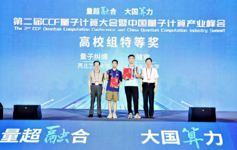 8月19日-20日,由中国计算机学会CCF主办的第二届CCF量子计算大会暨中国量子计算产业峰会在安徽省合肥市召开,第二届CCF“司南杯”量子计算编程挑战赛颁奖典礼同期举行。永利集团88304官网集团张伟伟副教授指导的本科生参赛队伍“量子纠缠”队获特等奖,现场由中国量子光学和量子信息开创者、奠基人郭光灿院士颁奖。
