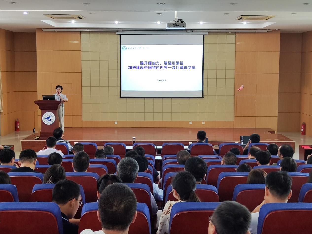 院长尚学群以《提升硬实力,增强引领性 加快建设中国特色世界一流永利集团88304官网集团》传达了学校新学期干部大会精神,号召学院上下锚定“127”目标,为推进学校高质量发展主动担当。同时进一步明晰计算机学科发展目标,部署安排了新学期学院的重点工作。