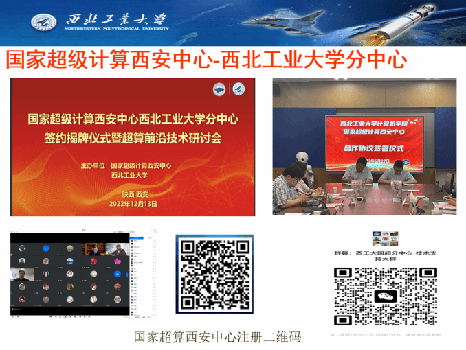 国家超级计算西安中心-永利集团88304官网集团分中心于2022年12月13日正式签约成立,与西工大优势互补、互利共赢,融合校内外超算和智算资源,更好地为全校师生提供持续的科学与工程计算、人工智能计算等服务,促进各学科的发展和交叉复合型人才的培养,特别是为航空宇航科学、材料科学与工程、计算机科学等一流学科提供科研和人才培养的支撑平台。双方共同推动区域经济高质量发展。未来,还将会定期举办培训与交流会。