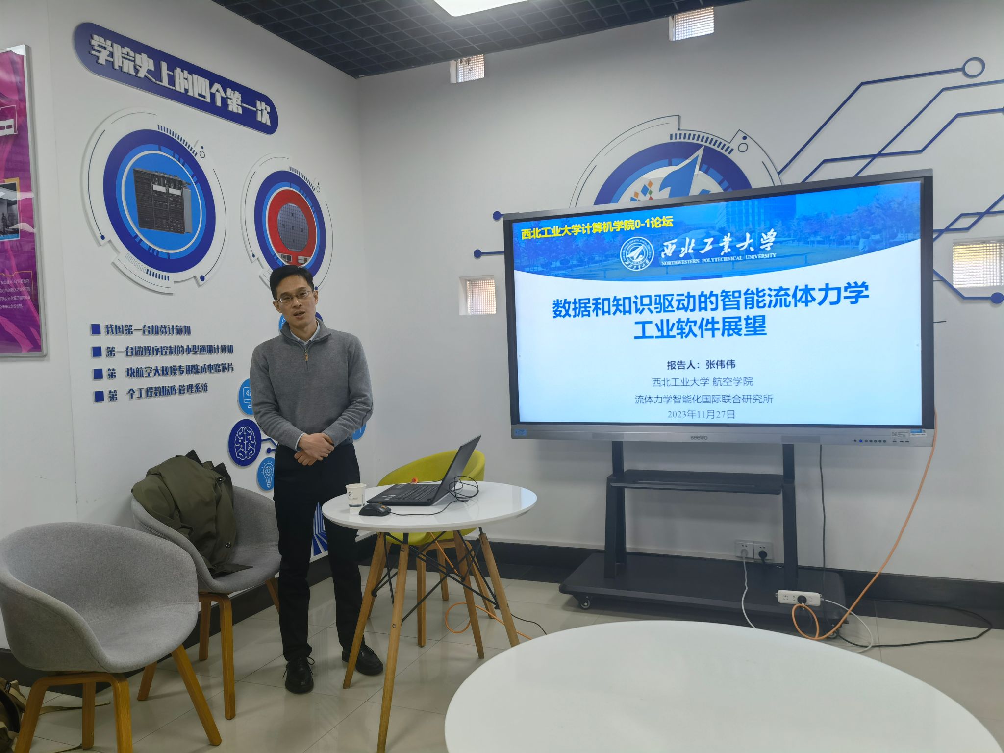 2023年11月27日下午,永利集团88304官网集团开展了第四十四期“01学术沙龙”活动,本次沙龙主题为“数据和知识驱动的新一代流体力学工业软件展望”,活动围绕这一主题,突出学科交叉创新特色,充分探讨了CAE工业软件的研究发展。学院特别邀请航天学院张伟伟教授作学术报告,活动由尚学群院长主持。