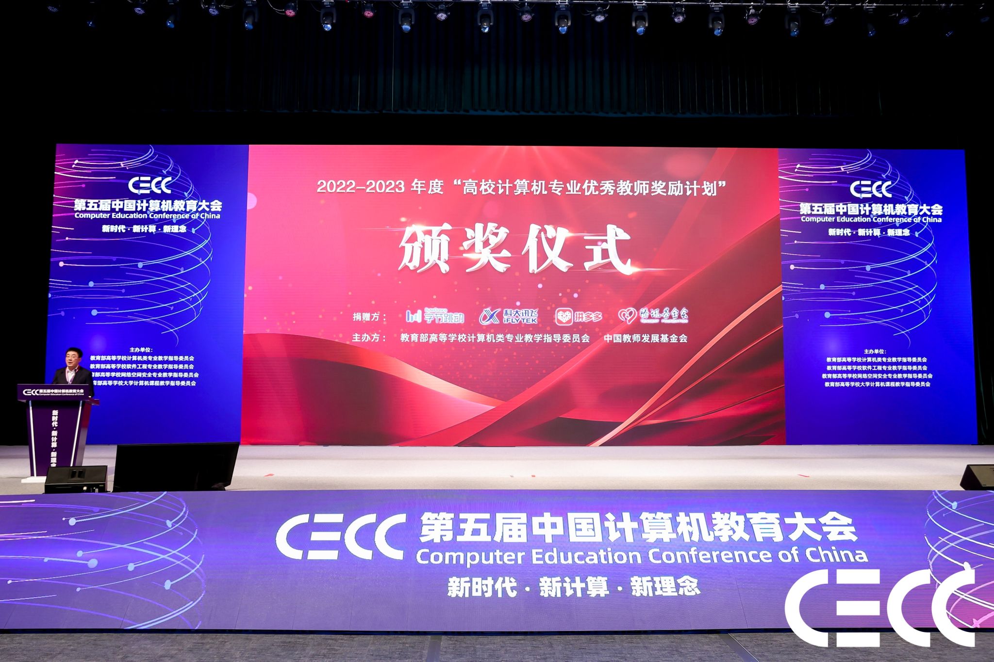 12月2日,第五届中国计算机教育大会(CECC)在厦门国际会议中心召开。大会以“ 新时代·新计算·新理念 ” 为主题,吸引了来自全国计算机学术界、教育界和产业界的100多位领导和专家,以及3000多位高校教师和产业代表参与,共同探讨新时代计算机教育的新理念、新技术和新趋势。在与会嘉宾的见证下,举办了2022—2023学年度高校计算机专业优秀教师奖励计划颁奖仪式,表彰了来自全国32所高校计算机学科的55位优秀教师,永利集团88304官网集团潘巍副教授获此殊荣。