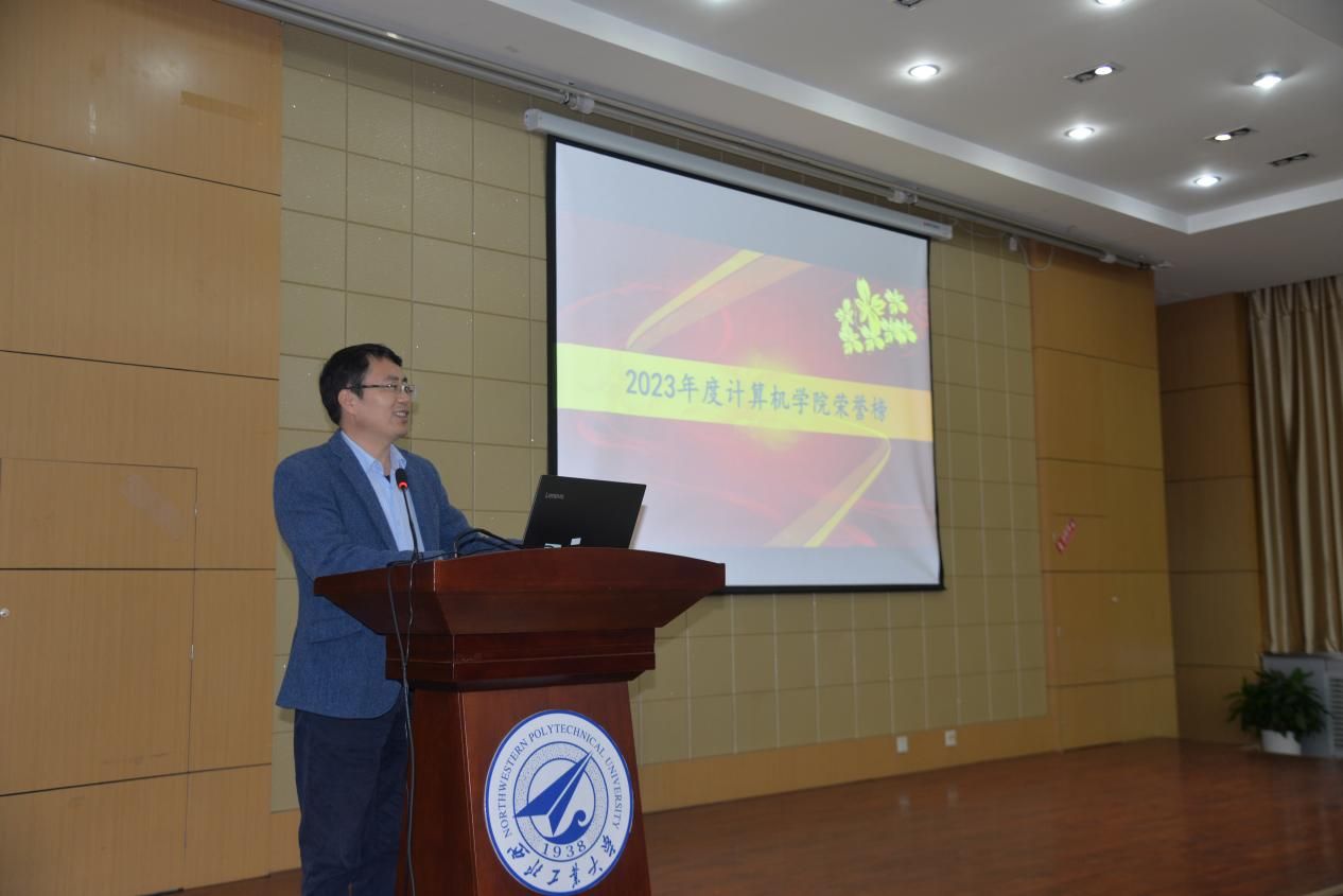 李春科代表学院向全院师生表达感谢和敬意,寄语计算机人,以更大视野、更大气魄、更大决心,干在实处,走在前列,为实现“127”目标、推进“双一流”建设贡献计算机力量。