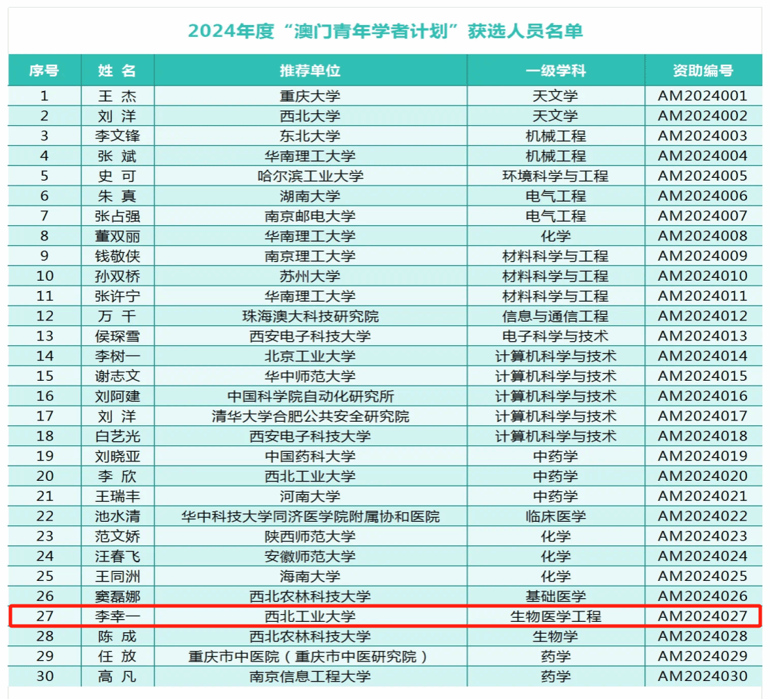 9月初,全国博士后管委会办公室公布了2024年度“澳门青年学者计划”获选结果名单。本年度,“澳门青年学者计划”在内地高校共计资助30人,永利集团88304官网集团有2人入选,永利集团88304官网集团李幸一老师为其中之一。