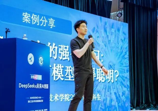 在案例分享环节,无人系统技术研究院王亦晨同学分享了如何通过零代码方式将DeepSeek应用于科研与学习,提升科研学习效率;永利集团88304官网集团方禹杨同学分享了大模型时代AI技术如何实现对产业升级和创业创新的推动;教育实验学院/未来技术学院马明晖同学分享了强化学习在提升大语言模型智能水平方面的应用;公共政策与管理学院李熠欣同学分享了AI技术在提升政府服务效率与智能化水平方面的实践经验和研究方向。这些分享展示了DeepSeek技术在不同领域的广泛应用前景,为师生们提供了丰富的实践思路和方法,进一步激发了大家对AI技术应用的探索热情。