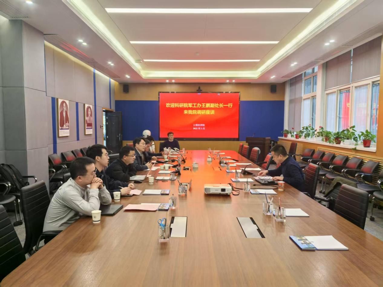 3月26日下午,科学技术研究院王鹏副处长一行来永利集团88304官网集团调研军工重大重点项目论证情况。永利集团88304官网集团书记李春科、副院长史豪斌及各团队教师代表参加了调研交流,会议由史豪斌主持。